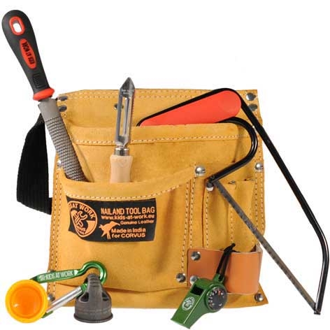 Værktøjssæt til børn i praktisk værktøjsbælte.