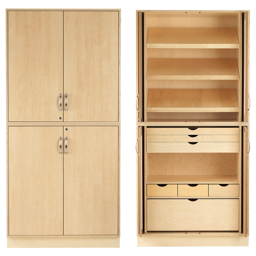 En serie robuste, attraktive og smarte skabe til opbevaring. Korpus og interiør i 18mm birk krydsfiner, der giver stabilitet og holdbarhed. Låger kan fås i birk eller glas, der er designet, så du nemt kan glide dem ud langs skabssiden. Ikke flere svingdøre, der er i vejen. Skabene leveres usamlet i en flad pakke,  for at minimere risikoen for beskadigelse under forsendelse og dyre forsendelsesomkostninger. Samlingen af skabene er meget enkel og installationsvejledning er inkluderet i pakken.