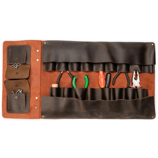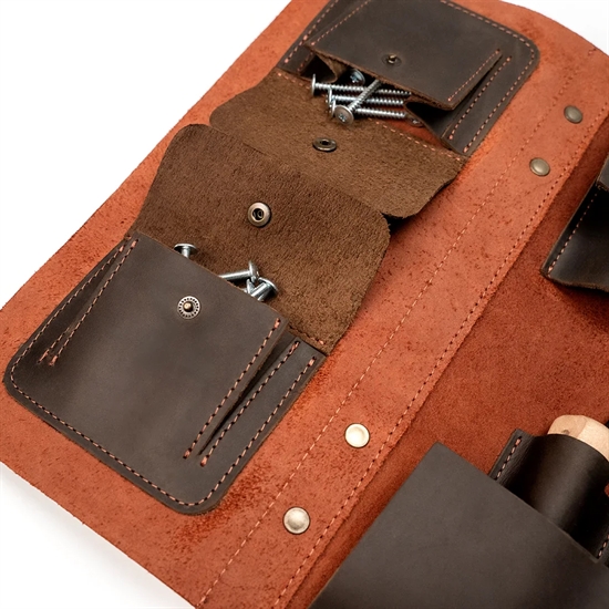 Mød din ultimative følgesvend til enkel organisering og et gnidningsløst workflow – vores Multi-Funktionelle Læderværktøjsrulle.